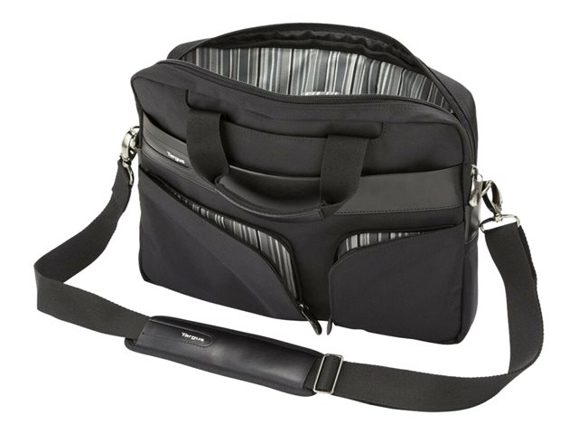 Transportez et protégez votre ordinateur portable de 13,3" dans cette mallette fine et élégante ornée d'accents en simili cuir et d'une doublure protectrice à rayures. Protégez votre ordinateur portable dans une poche matelassée et ajustée, dotée d'une sangle de sécurité pour limiter le mouvement des ordinateurs portables. Une autre poche similaire vous permet de protéger également votre iPad ou votre tablette. Les poignées de transport et la bandoulière matelassées vous assurent un transport confortable.