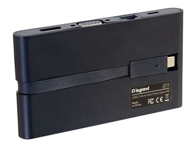 Legrand USB-C All-in-One Travel Dock with 4K HDMI, VGA, Ethernet, USB, SD Card Reader and Power Delivery - Station d'accueil - USB-C 3.1 / Thunderbolt 3 - VGA, HDMI - 1GbE
