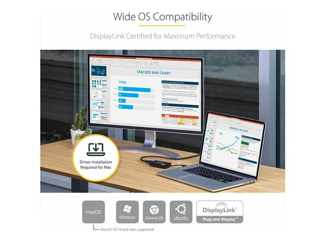 StarTech.com Adaptateur USB 3.0 vers HDMI, 4K 30Hz Ultra HD, certifié DisplayLink, convertisseur d'adaptateur d'affichage USB Type-A vers HDMI pour moniteur, vidéo externe et carte graphique, Mac et Windows - Adaptateur USB vers HDMI (USB32HD4K) - Câble adaptateur - Conformité TAA - USB type A mâle pour HDMI femelle - 20 cm - noir - alimentation USB + audio - pour P/N: HDDVIMM3, HDMM12, HDMM15, HDMM1MP, HDMM2MP, HDMM3, HDMM3MP, HDMM50A, HDMM6, HDPMM50
