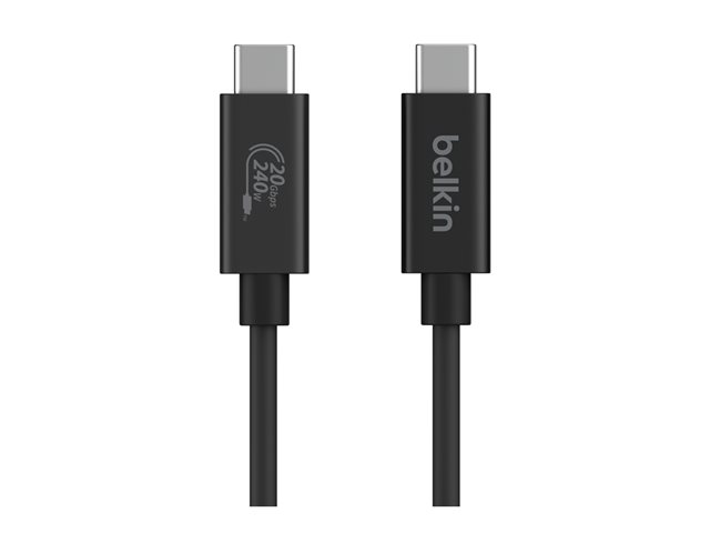 Belkin CONNECT - Câble USB - 24 pin USB-C (M) pour 24 pin USB-C (M) - USB 2.0 / USB 3.0 / USB 3.2 / USB 4.0 /Thunderbolt 3 / Thunderbolt 4 - 2 m - prise en charge UHD 4K60Hz, Alimentation USB (240 W) INZ004BT2MBK