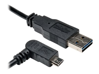 Tripp Lite 1ft USB 2.0 High Speed Cable Reversible A to Right Angle 5Pin Micro B M/M 1' - Câble USB - Micro-USB de type B (M) pour USB (M) - USB 2.0 - 30 cm - connecteur à angle droit - noir