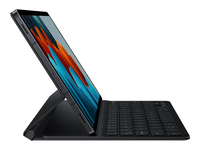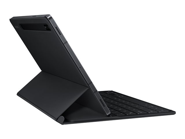 Mettez en valeur la forme de votre Galaxy Tab avec le Book Cover Keyboard Slim, fin et léger. Il s'installe en un clin d'œil. Il vous suffit de le placer autour de votre tablette comme une couverture de livre, et des aimants le maintiendront en place. Il y a même un compartiment pour accueillir votre S Pen.
