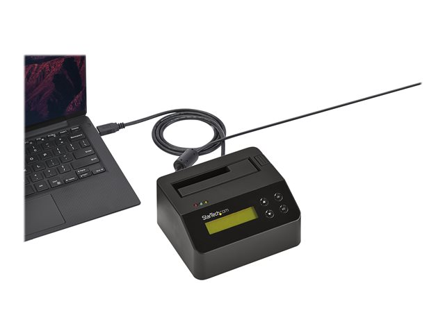 Tirez le meilleur parti de vos disques SATA. Cette station d'effacement autonome vous permet d'effacer vos SSD ou disques durs 2,5" et 3,5" sans aucune connexion à un ordinateur hôte, facilitant ainsi la réutilisation et la réaffectation de vos disques SATA. Pour assurer votre tranquillité d'esprit, la station propose une confirmation imprimée lorsque les données ont été effacées de manière sécurisée. La station d'effacement constitue par ailleurs une station d'accueil à baie unique pour un disque SATA et assure des performances de niveau USB 3.0, également appelé " USB 3.1 Gen 1 " (5 Gb/s).