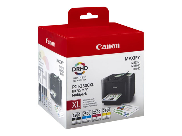 Canon PGI-2500XL C/M/Y/BK - Pack de 4 - noir, jaune, cyan, magenta - original - réservoir d'encre - pour MAXIFY iB4050, iB4150, MB5050, MB5150, MB5155, MB5350, MB5450, MB5455