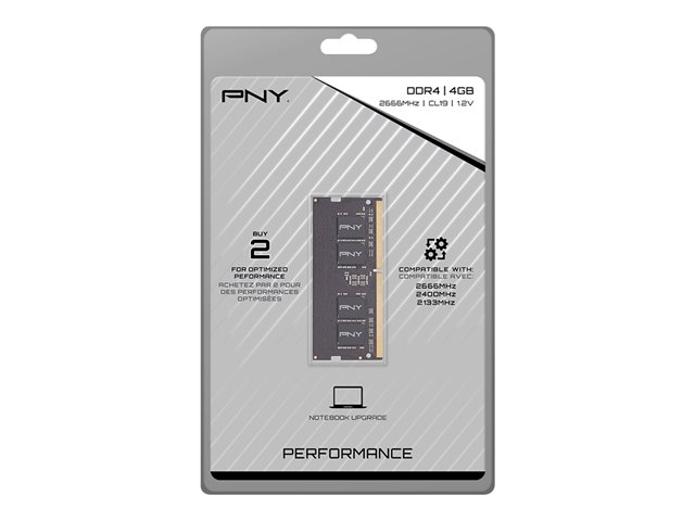 PNY - DDR4 - module - 4 Go - SO DIMM 260 broches - 2666 MHz / PC4-21300 - CL19 - 1.2 V - mémoire sans tampon - non ECC