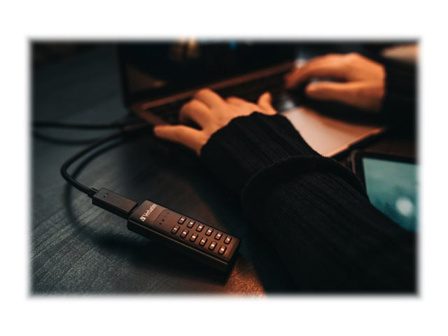 Le chiffrement matériel AES 256 bits chiffre en temps réel de façon transparente toutes les données présentes sur le disque avec un clavier intégré pour saisir le mot de passe. Le disque dur ne conserve pas les mots de passe sur l'ordinateur ou la mémoire volatile du système, ce qui le rend bien plus sécurisé qu'un chiffrement logiciel. S'il tombe dans de mauvaises mains, le disque dur se verrouille et nécessite un reformatage après 20 tentatives de mot de passe échouées.