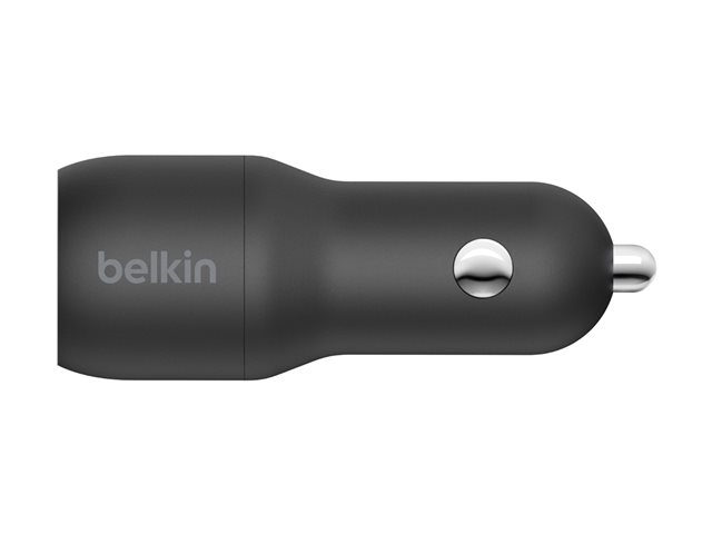 Belkin BOOST CHARGE Double chargeur - Adaptateur d'alimentation pour voiture - 24 Watt - 4.8 A - 2 connecteurs de sortie (USB) - sur le câble : Lightning - noir CCD001BT1MBK
