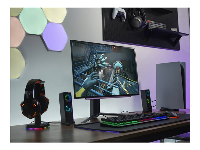 FonctionsGamma 10 bits, FPS Mode, Crosshair Display, Flicker Safe, RTS Mode, technologie Smart Energy Saving, Color Calibrated, Black Stabilizer, DAS Mode (Dynamic Action Sync), One Click Stand, sRGB Mode, mode vif, Compteur FPS, HDR Effect, commutateur d'entrée automatique, étalonnage HW, Hexagon Lighting, Interface utilisateur graphique pour les jeux, Taux de rafraîchissement variable (VRR), écran virtuellement sans bords sur 4 côtés, OLED Care