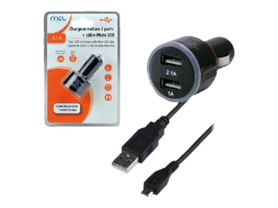 MCL Samar - Adaptateur d'alimentation pour voiture - 3.1 A - 2 connecteurs de sortie (USB) - sur le câble : Micro-USB