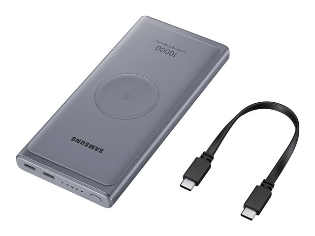 Samsung Wireless Battery Pack EB-U3300 - Bloc de charge sans fil/banque d'énergie - 10000 mAh - 25 Watt - 3 A - QC 2.0, FC - 2 connecteurs de sortie (24 pin USB-C) - sur le câble : USB-C - gris foncé