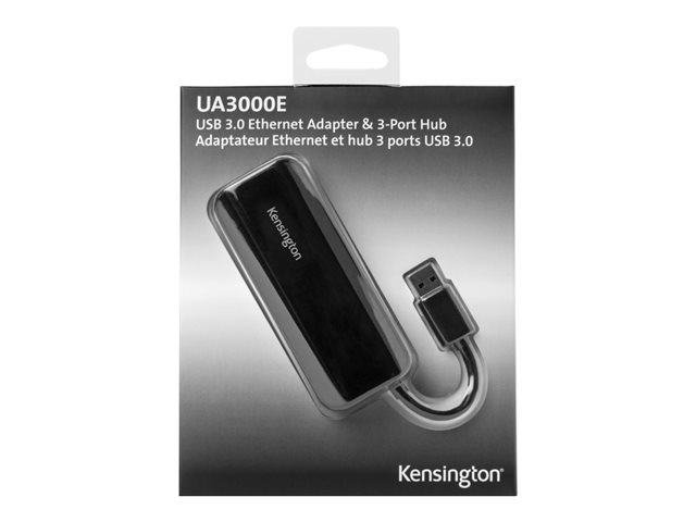 Kensington UA3000E - Adaptateur réseau - USB 3.0 - Gigabit Ethernet x 1 + USB 3.0 x 3 - noir