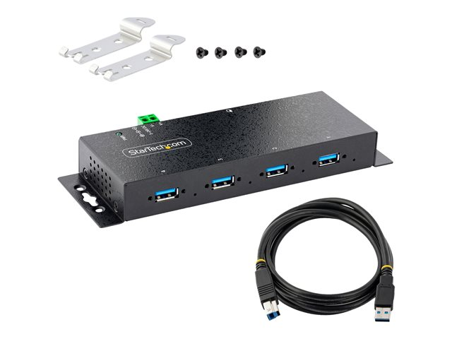 StarTech.com 4-Port Industrial USB 3.0 5Gbps Hub, Rugged USB Hub w/15kV Air/8kV Contact ESD and Surge Protection, DIN/Wall/Desk Mountable USB-A Hub, USB Expansion Hub with Locking Ports - Metal Construction (5G4AINDNP-USB-A-HUB) - Concentrateur (hub) - industriel - 4 x USB 3.2 Gen 1 - de bureau, Montage sur rail DIN, fixation murale 5G4AINDNP-USB-A-HUB