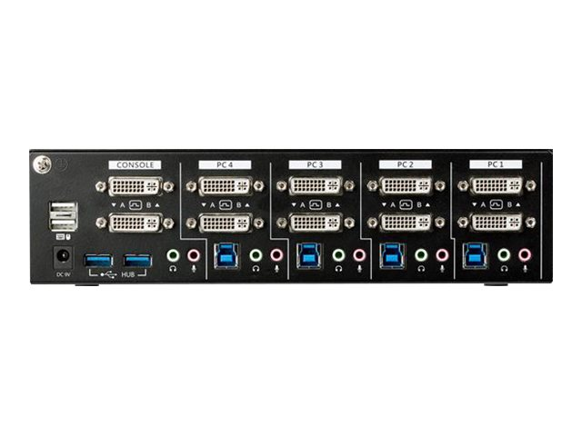 StarTech.com Commutateur écran clavier souris USB à double affichage DVI - Switch KVM pour écran PC à 4 ports avec hub USB 3.0 intégré - Commutateur écran-clavier-souris/audio/USB - 4 x KVM / audio / USB - Conformité TAA