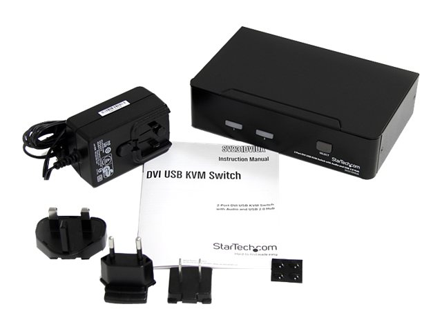 StarTech.com Switch KVM USB DVI à 2 ports - Commutateur écran clavier souris DVI avec audio et hub USB 2.0 - 1920x1200 - Commutateur écran-clavier-souris/audio/USB - 2 x KVM / audio / USB - 1 utilisateur local - de bureau - pour P/N: IM12D1500P, SVA12M2NEUA, SVA12M5NA, USBDVI4N1A10, USBDVI4N1A6