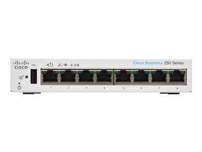 Les commutateurs Cisco Business CBS250-8T-D sont des commutateurs intelligents de nouvelle génération, disponibles à un prix compétitif, qui associent performances réseau élevées, sécurité et fiabilité à toute épreuve, ainsi qu'un éventail complet de fonctionnalités pour un réseau de PME solide.