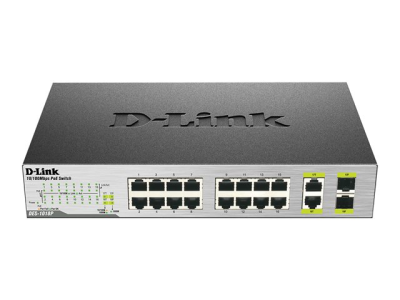 D-Link DES 1018MP - Commutateur - non géré - 16 x 10/100 (PoE) + 2 x SFP Gigabit combiné - de bureau - PoE (80 W)